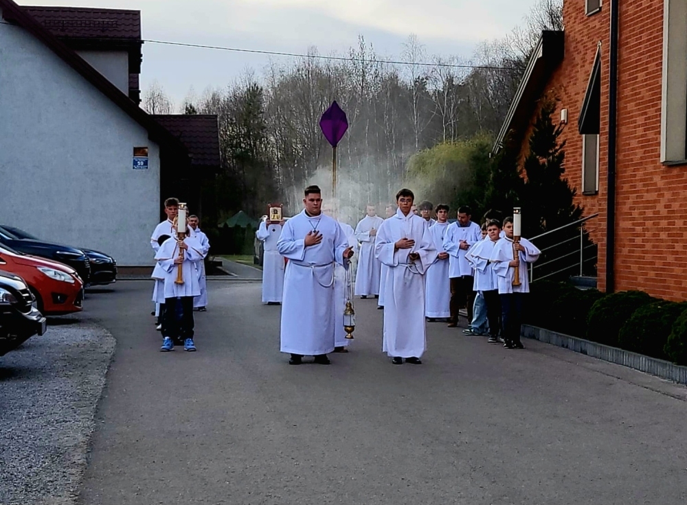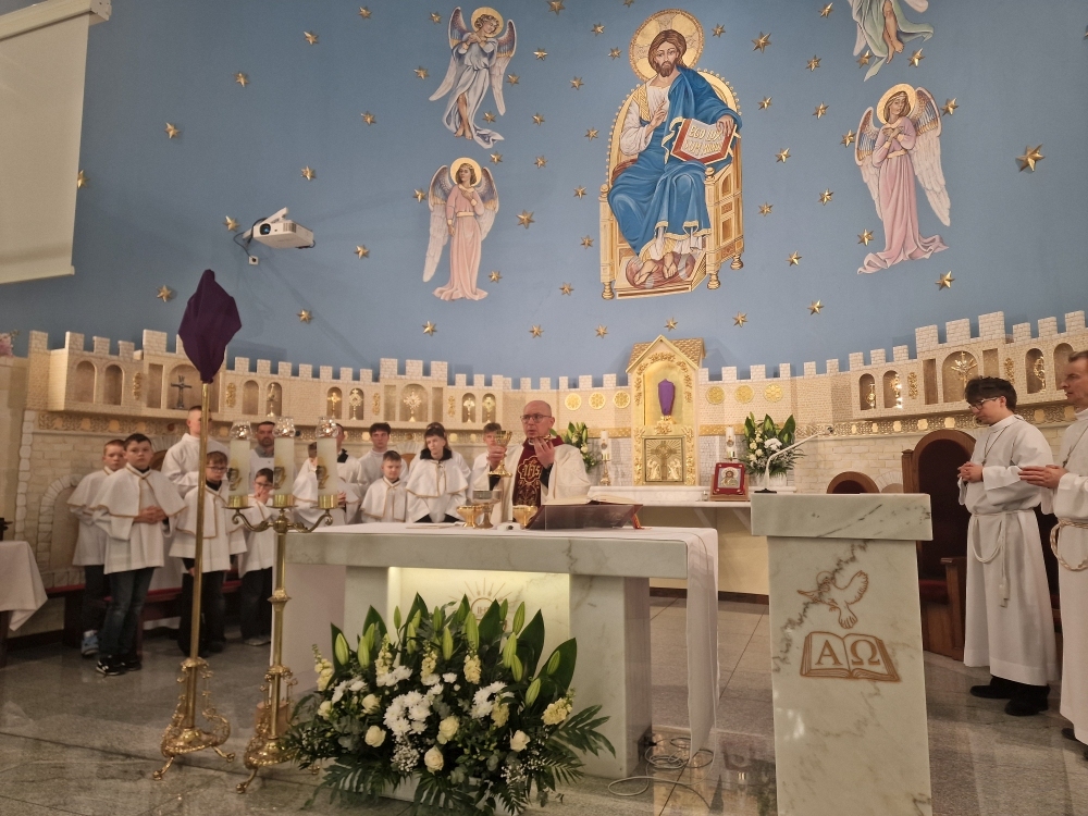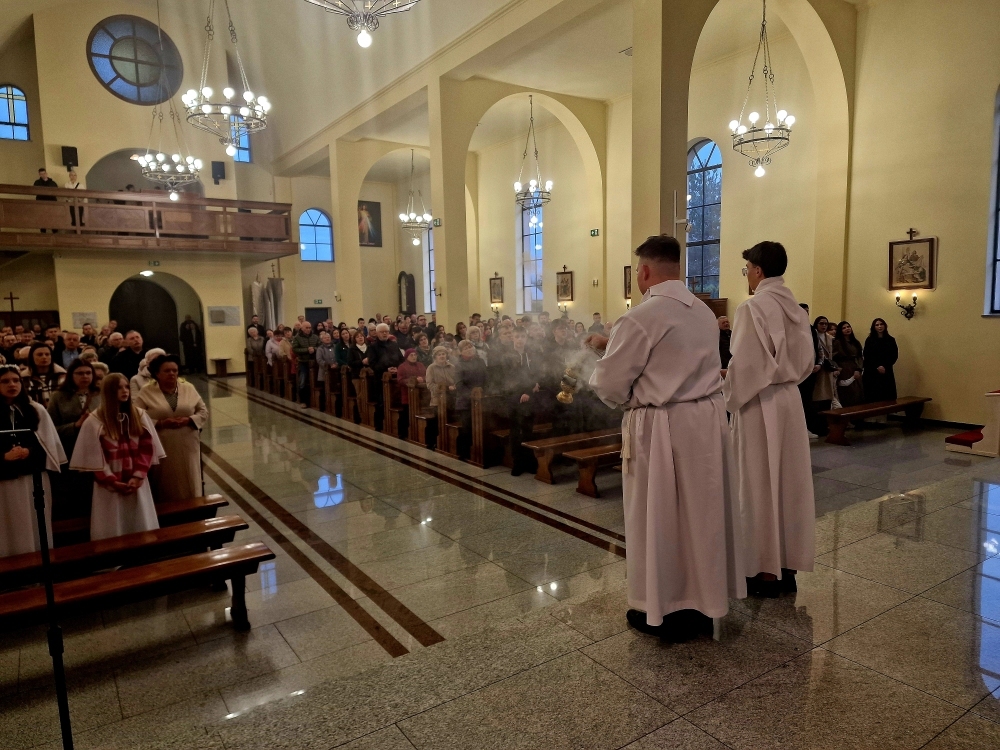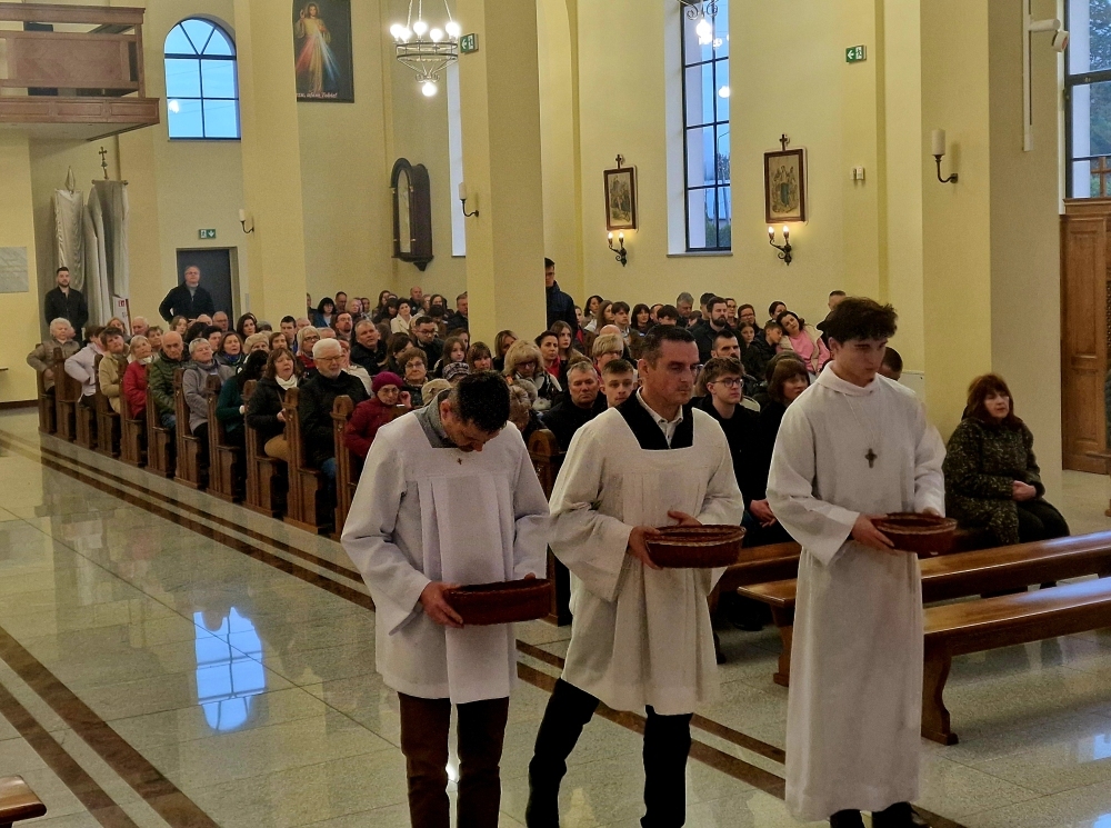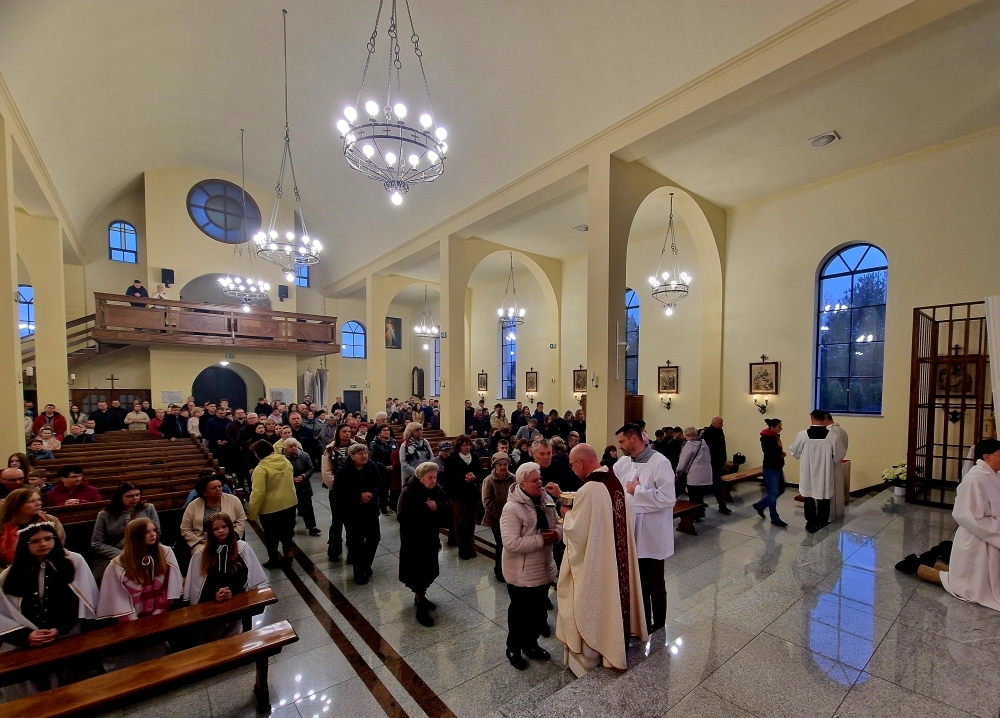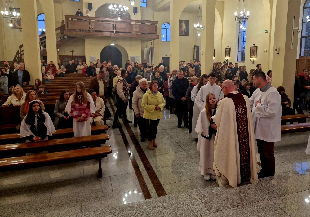 15 minut przed każdą Mszą świętą - Koronka do Bożego Miłosierdzia, a 30 minut przed każdą Mszą możliwość spowiedzi.