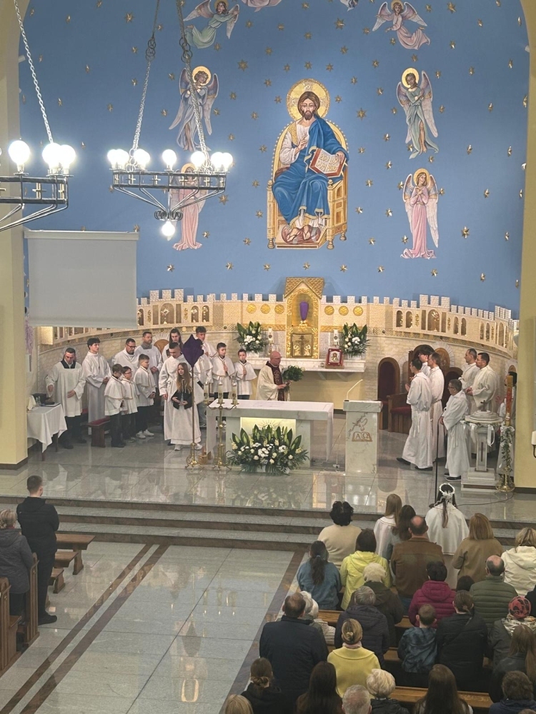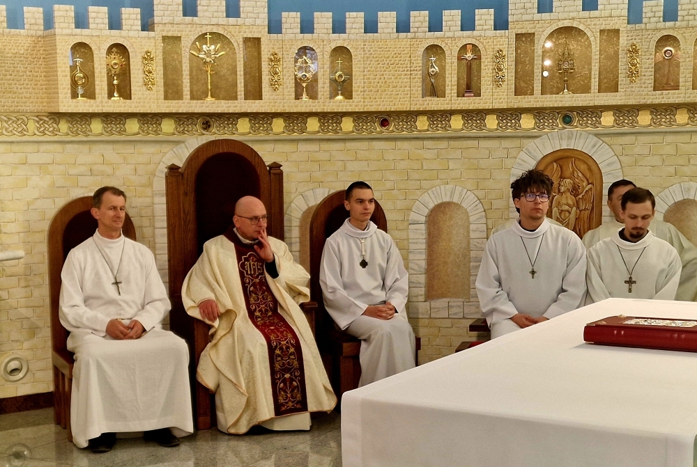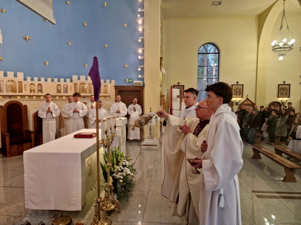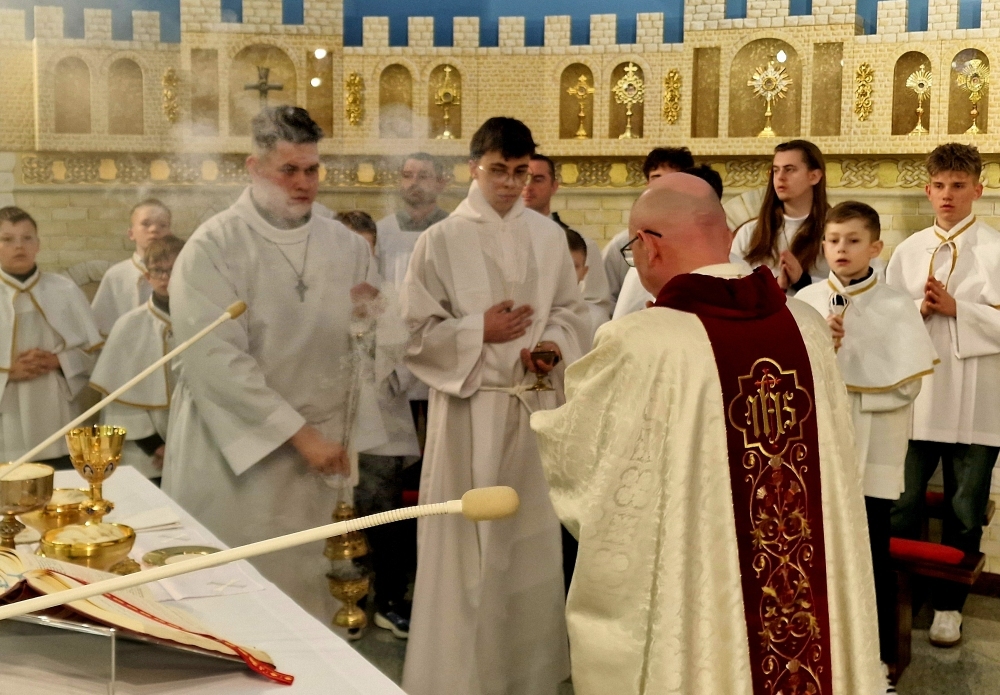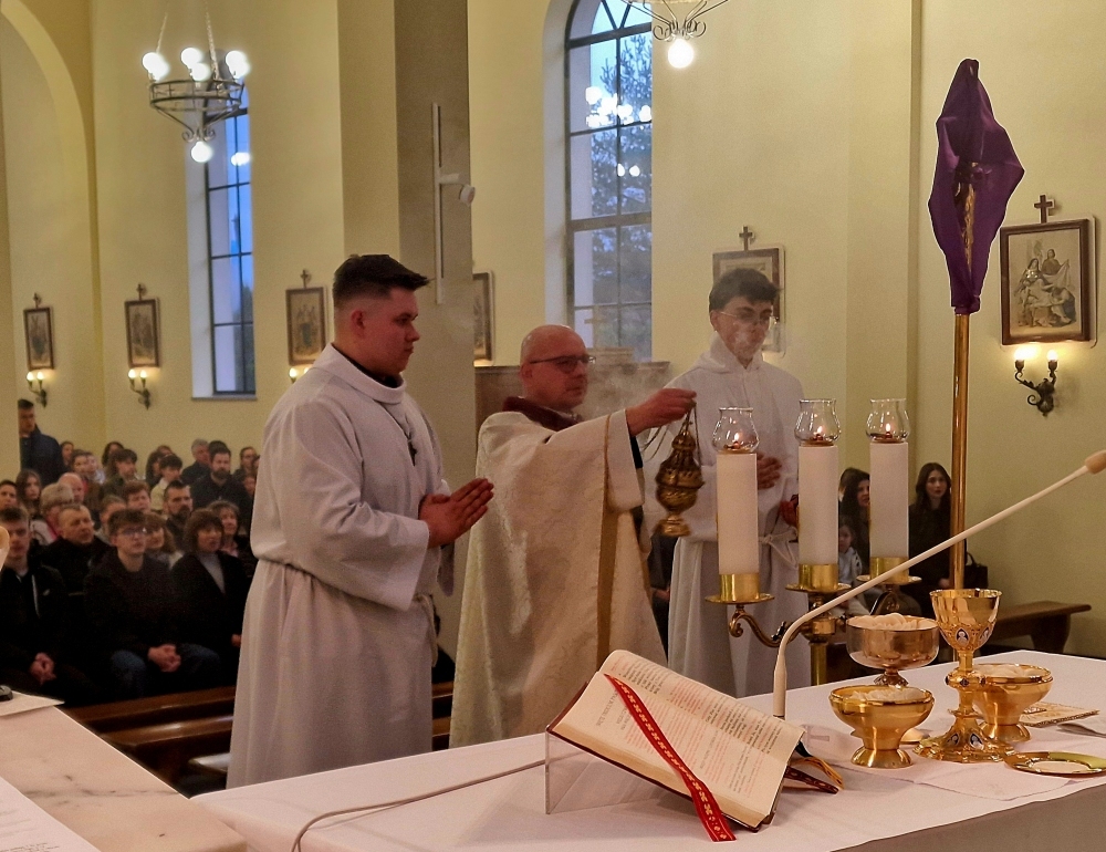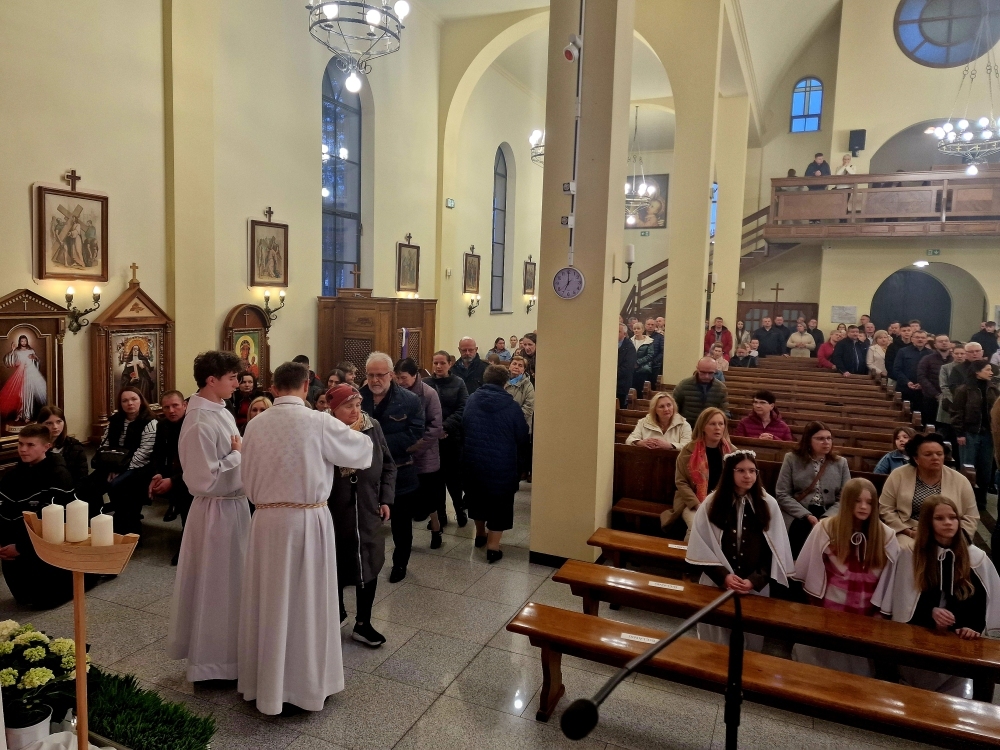 15 minut przed każdą Mszą świętą - Koronka do Bożego Miłosierdzia, a 30 minut przed każdą Mszą możliwość spowiedzi.